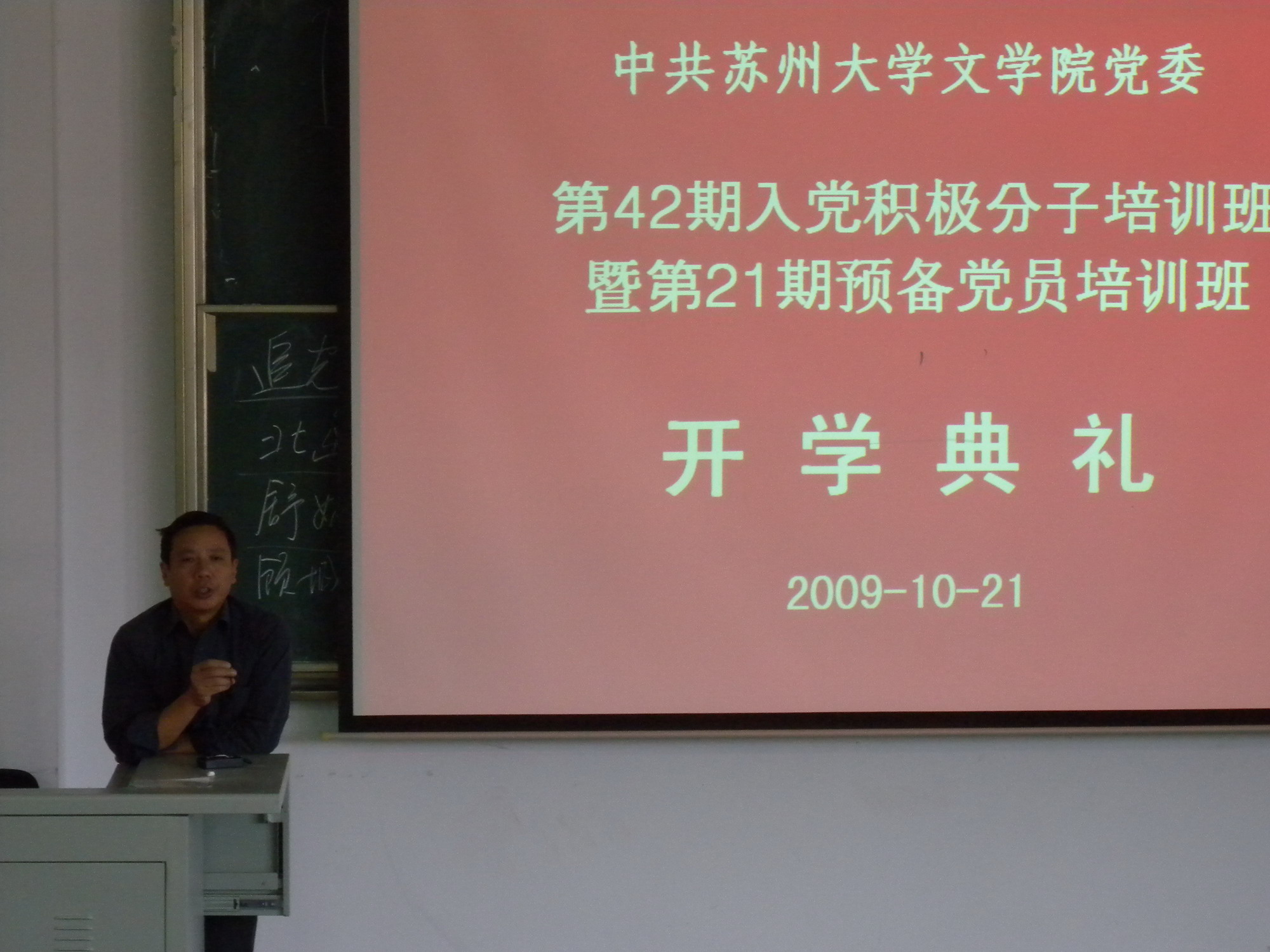 随后王书记对党校学习的情况做了基本的介绍,并对学员们提出了要求。他要求学员们要以正确的态度去对待这次学习;要“真学真懂”,做到“两不误”,即不耽误专业学习,不耽误党的基本理论学习,做好二者间的协调;他还要求学员们不要死学,要理论联系实际。最后他表达了对学员们的美好祝愿,开学典礼在一片热烈的掌声中结束。
