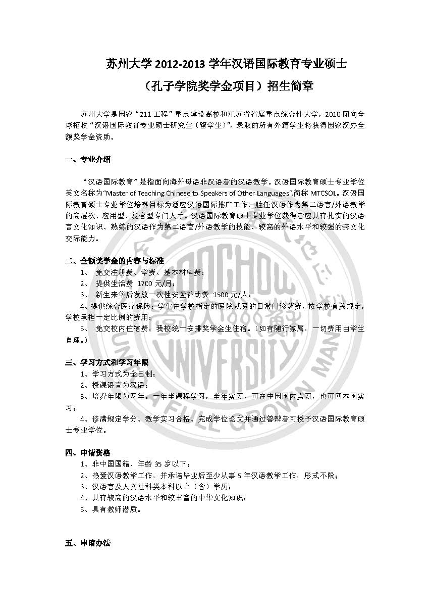 必威betway西汉姆联2012汉语国际教育专业硕士(孔子学院奖学金)招生简章
