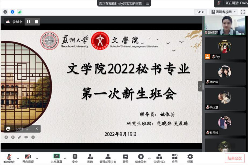 9月19日下午,由2022级自考助学秘书专业辅导员姚依芸老师主持的22级秘书学自考新生第一次班会在腾讯会议召开,全体新生及两位辅导员班助范晓烨、吴晨璐出席了本次会议。新生班会主要分为五个部分:导员和班助自我介绍、必威betway西汉姆联概况、规章与制度、苏大食住行、班委竞选演讲。