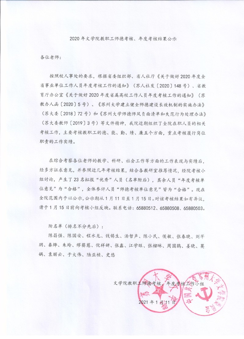 2020必威西汉姆联教职工师德考核、年度考核结果公示