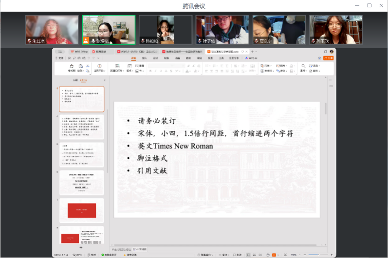 讲座最后,张老师与同学们展开线上互动,耐心解答了孙雨欣同学关于同一篇文献多次引用应如何标注的问题,并鼓励大家克服畏难情绪,降低“完美主义”预期,从认真对待课程作业开始,在实践中学会“用规范的学术语言表达有趣的想法”,培养“乙方意识”,有力“推销”自己的观点。