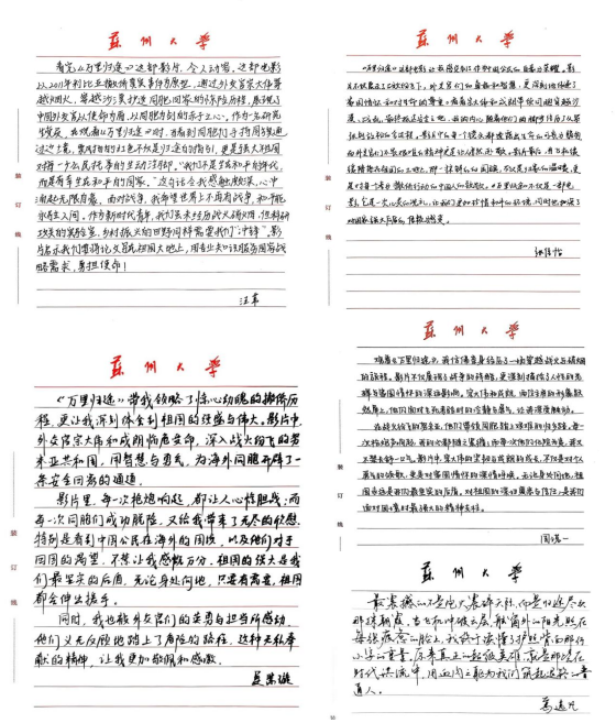 观影结束后,同学们纷纷在信纸上写下自己的感想,分享自己观影后的心得体会。