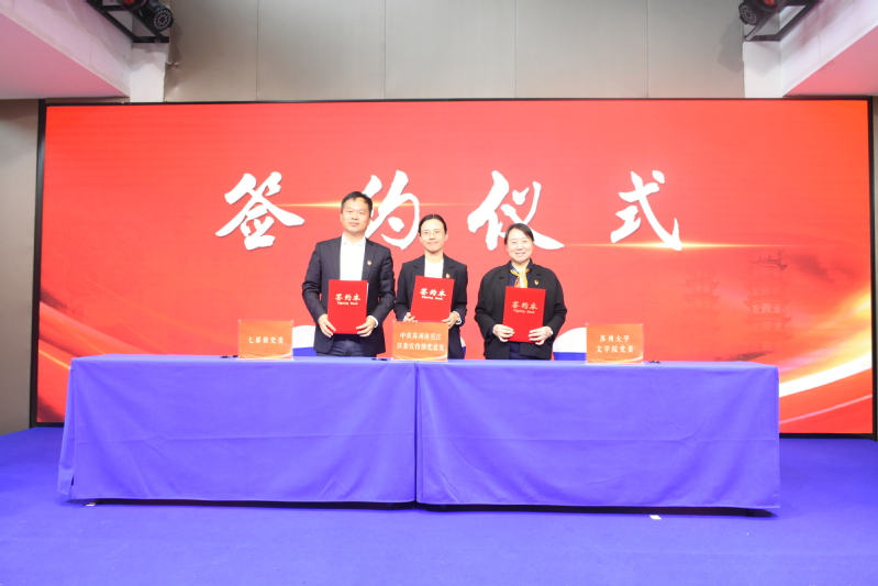 为认真学习宣传贯彻党的二十大精神,创新基层党建工作载体,提高基层党建工作水平,11月18日,必威西汉姆联党委赴吴江七都镇开弦弓村,与吴江区委宣传部党总支、七都镇党委共同开展“党建引领聚合力,三方共建促振兴”校地党建共建结对活动和签约仪式。